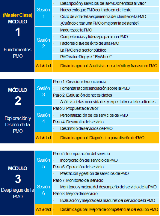 Impulsamos la mejora de capacidades en gestión de proyectos bajo enfoques ágiles, tradicionales e híbridos, planificación estratégica, inversión pública, liderazgo institucional y diseño de oficinas de proyectos (PMO).